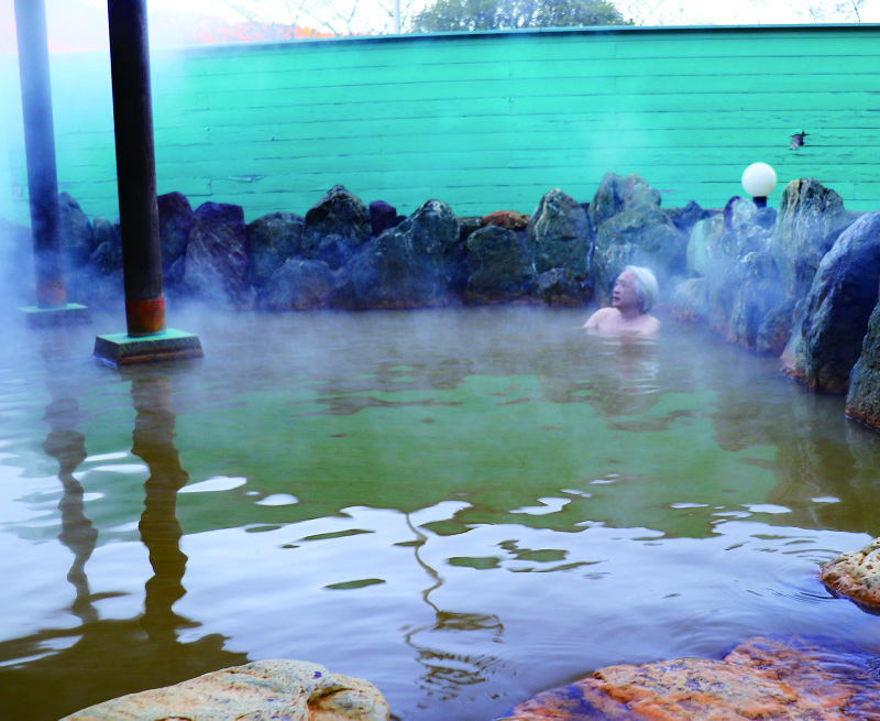 この日も黄褐色の湯が湯船をたたえていた。ほんのりと漂う油臭。この石油のような独特な温泉臭こそが名湯たるゆえんである。時に湯面に油の膜が張り、日の光に照らされてキラキラと虹色に輝くことから「奇跡の湯」ともいわれる。