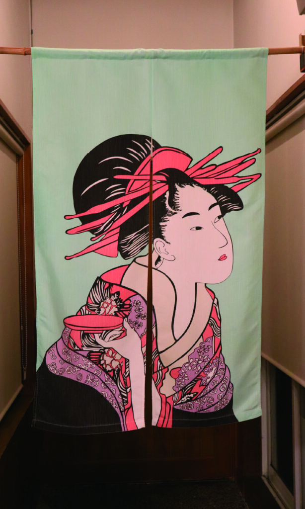 一夜明け、浴室へ向かう渡り廊下の途中に、粋な貼り紙を見つけた。「あいまがわ節」(草津節の替え歌)とある。