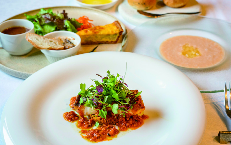 旬の食材を使ったスープを経て、魚料理は真鯛のポワレ。上には真ダコを細かく刻んだラグーソース。鯛とタコの共演は、力強さと繊細さが同居する。思わずパンをちぎり、ソースを最後までさらってしまった。