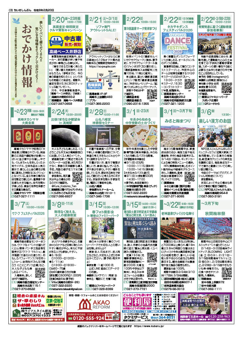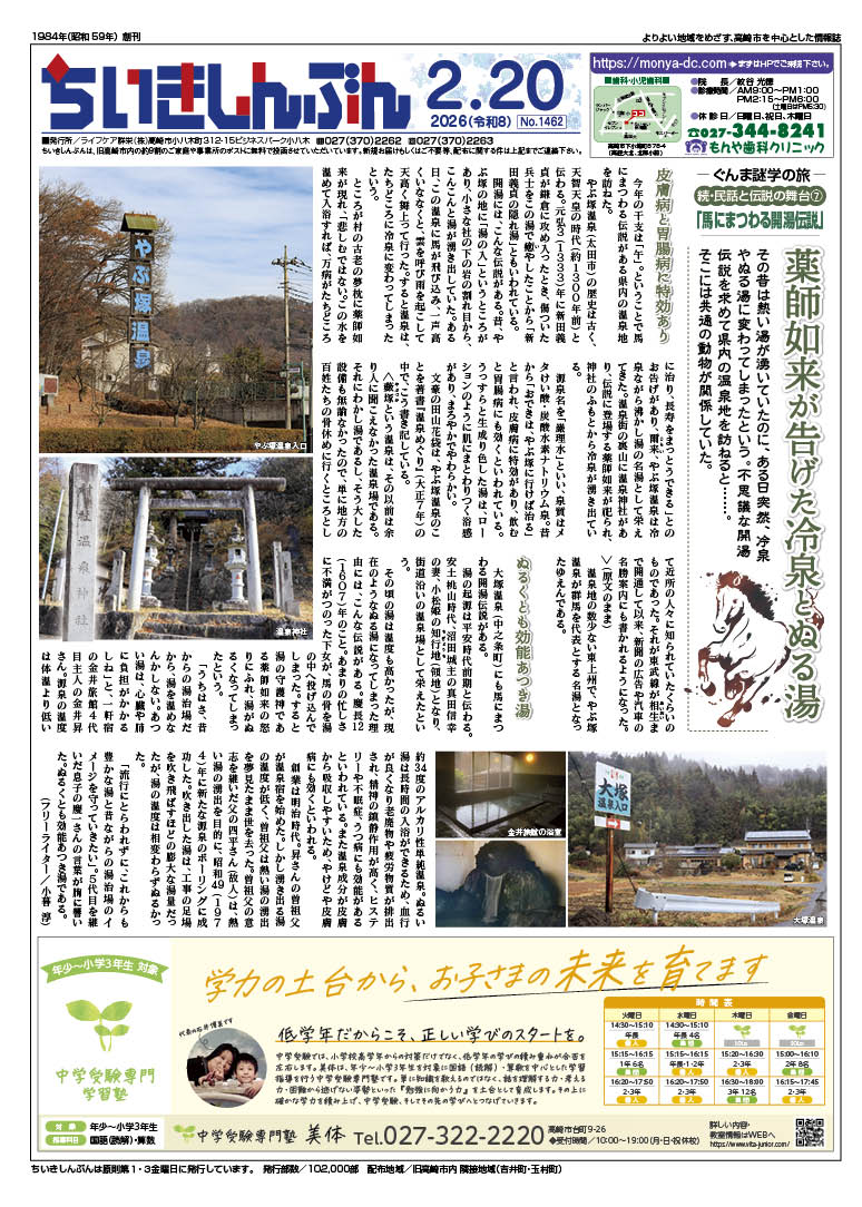 バックナンバー 2026年02月20日号 2026 2/17 バックナンバー 2026年2月20日 URLをコピーしました! 目次1面 紙面の画像はPDF版とリンクしています。 2面 紙面の画像はPDF版とリンクしています。 3面 紙面の画像はPDF版とリンクしています。 4面 紙面の画像はPDF版とリンクしています。 バックナンバー よかったらシェアしてね! URLをコピーしました! URLをコピーしました! バックナンバー 2026年02月13日号 ぐんま謎学の旅 続・民話と伝説の舞台(7) 「馬にまつわる開湯伝説」2026年02月20日号 おすすめ記事 バックナンバー 2026年02月13日号 2026年2月13日 バックナンバー 2026年02月06日号 2026年2月6日 バックナンバー 2026年01月23日号 2026年1月23日 バックナンバー 2026年01月16日号 2026年1月16日 バックナンバー 2026年01月09日号 2026年1月9日 バックナンバー 2025年12月19日号 2025年12月19日 バックナンバー 2025年12月12日号 2025年12月12日 バックナンバー 2025年12月05日号 2025年12月5日