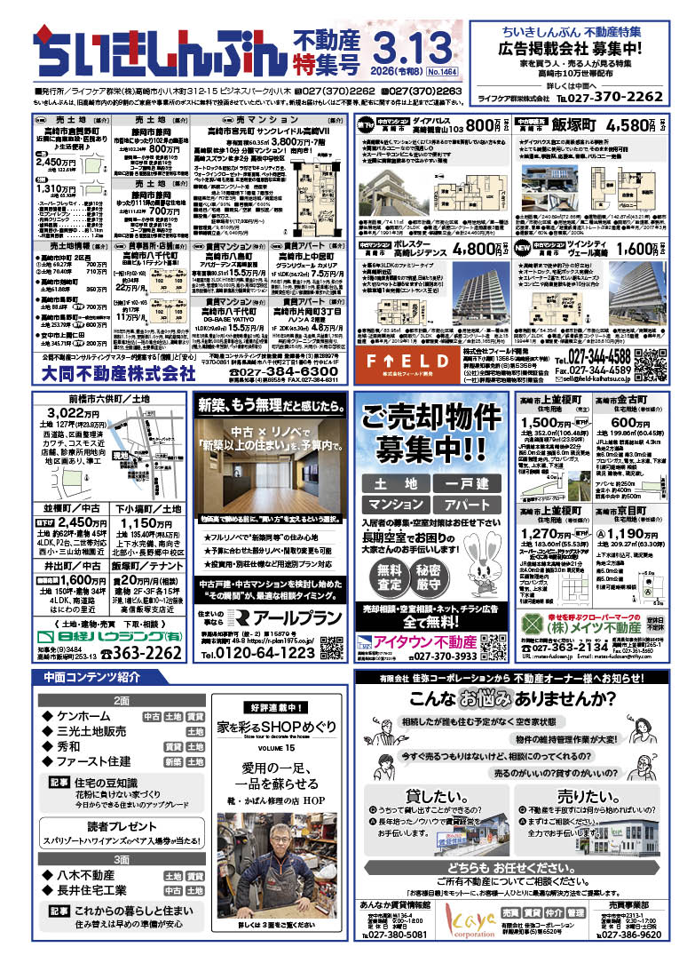 バックナンバー 2026年03月13日号 2026 3/12 バックナンバー 2026年3月13日 URLをコピーしました! 目次1面 紙面の画像はPDF版とリンクしています。 2面 紙面の画像はPDF版とリンクしています。 3面 紙面の画像はPDF版とリンクしています。 4面 紙面の画像はPDF版とリンクしています。 バックナンバー よかったらシェアしてね! URLをコピーしました! URLをコピーしました! ちいきしんぶん読者プレゼント おすすめ記事 バックナンバー 2026年03月06日号 2026年3月6日 バックナンバー 2026年02月20日号 2026年2月20日 バックナンバー 2026年02月13日号 2026年2月13日 バックナンバー 2026年02月06日号 2026年2月6日 バックナンバー 2026年01月23日号 2026年1月23日 バックナンバー 2026年01月16日号 2026年1月16日 バックナンバー 2026年01月09日号 2026年1月9日 バックナンバー 2025年12月19日号 2025年12月19日